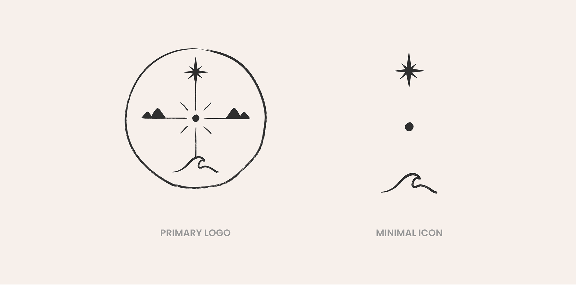 The client described a symbol called the Sacred Earth Compass. They wanted an imperfect hand-drawn circle with a soft compass rose, a north star for guidance, a gentle wave at the south for renewal, and mountain lines to the east and west for grounding. They also asked for stamp, tattoo, and minimal icon versions, plus a calm, timeless look.