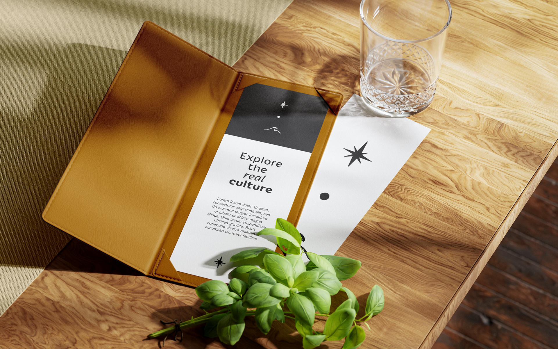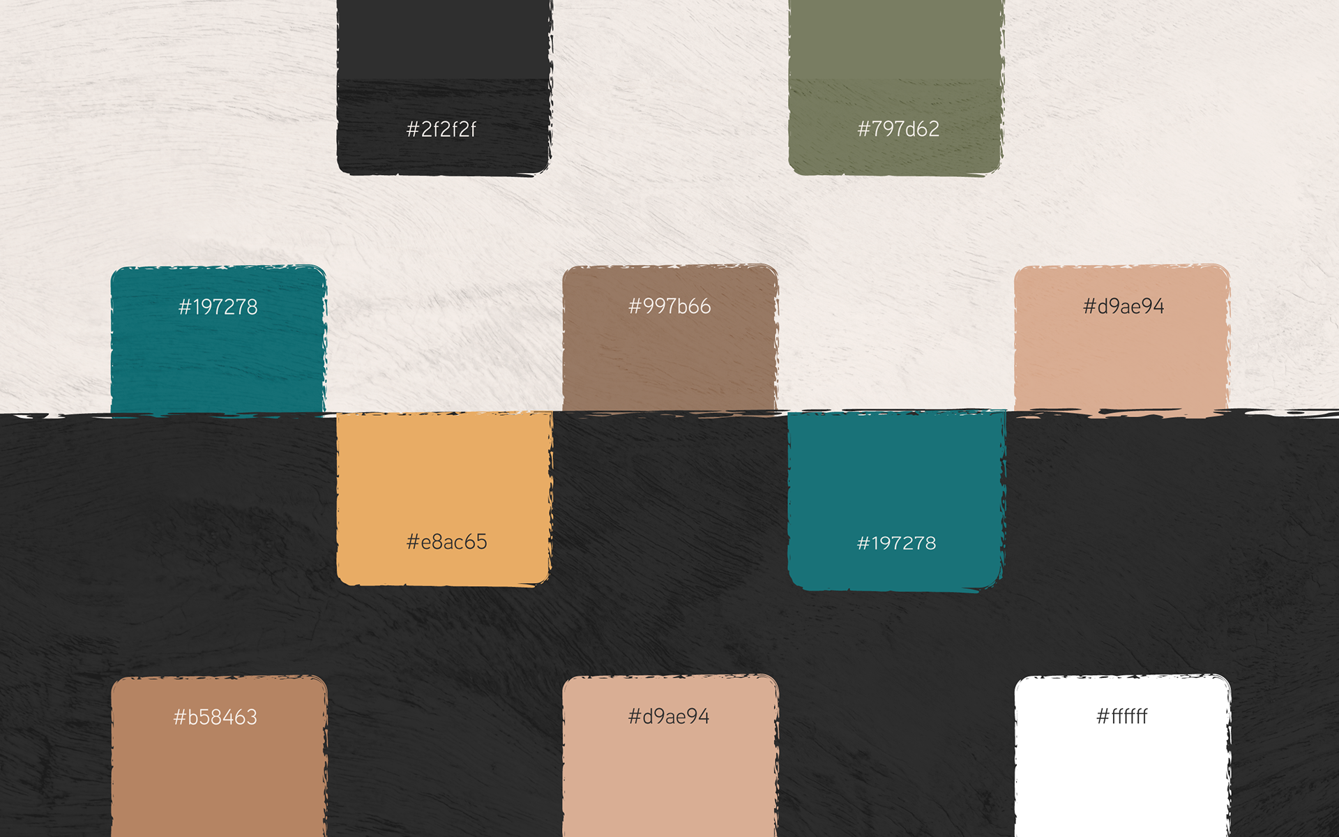 Selected calm editorial type and a palette rooted in earth tones.